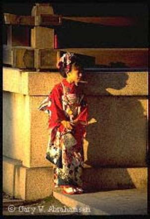 November 15 is "Shichi go san"; literally seven, five, three. This is a holiday devoted to girls age seven and three, and boys age five. It is not one of the thirteen National holidays, so it is not a day off, but it is one of the best times to be at a shrine or temple if you want to take pictures of people in traditional dress; parents as well as children. Even adults who don't have children are there to take advantage of the photo opportunities. The girl below was very popular with the photographers and she seemed to loved the attention.